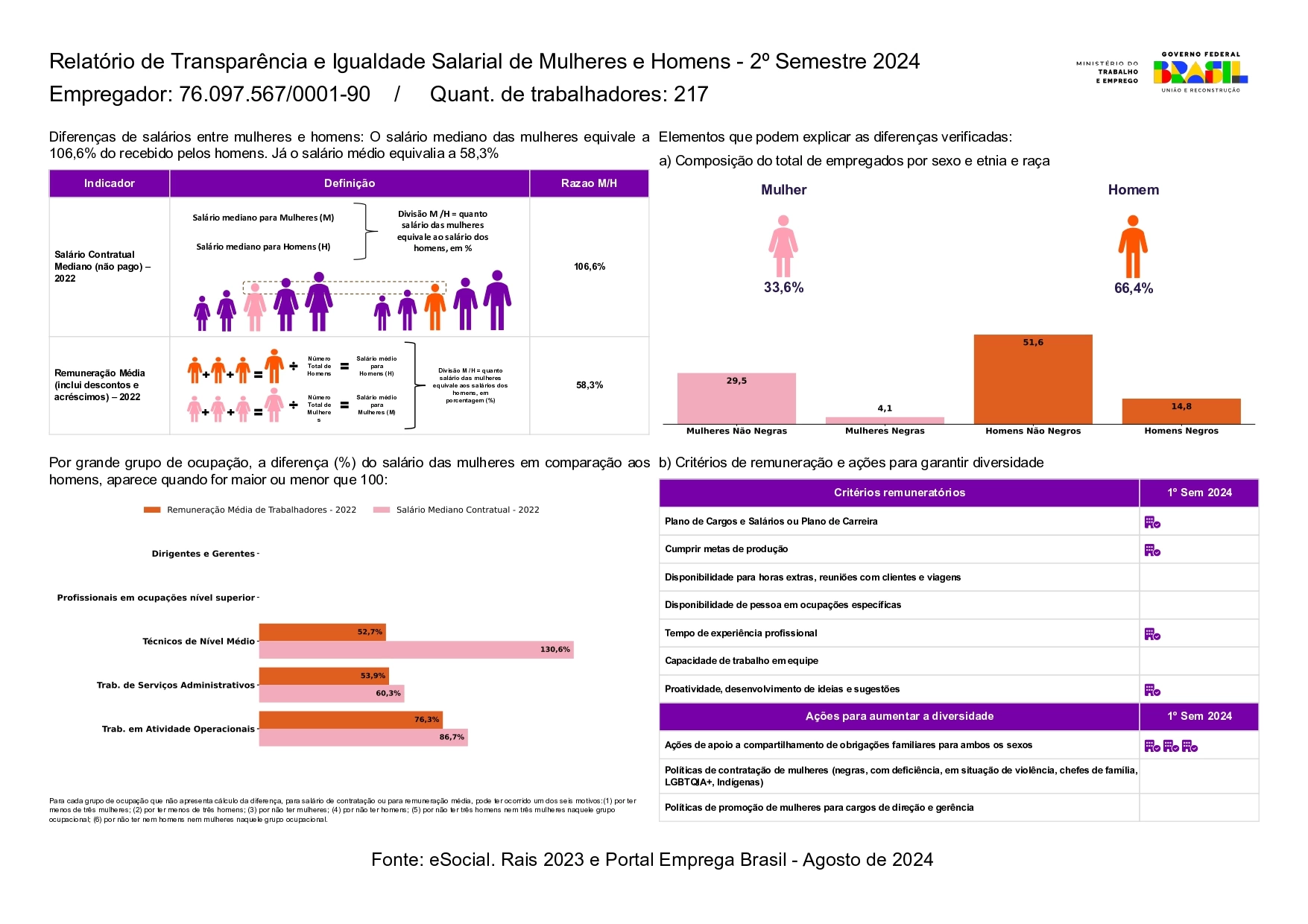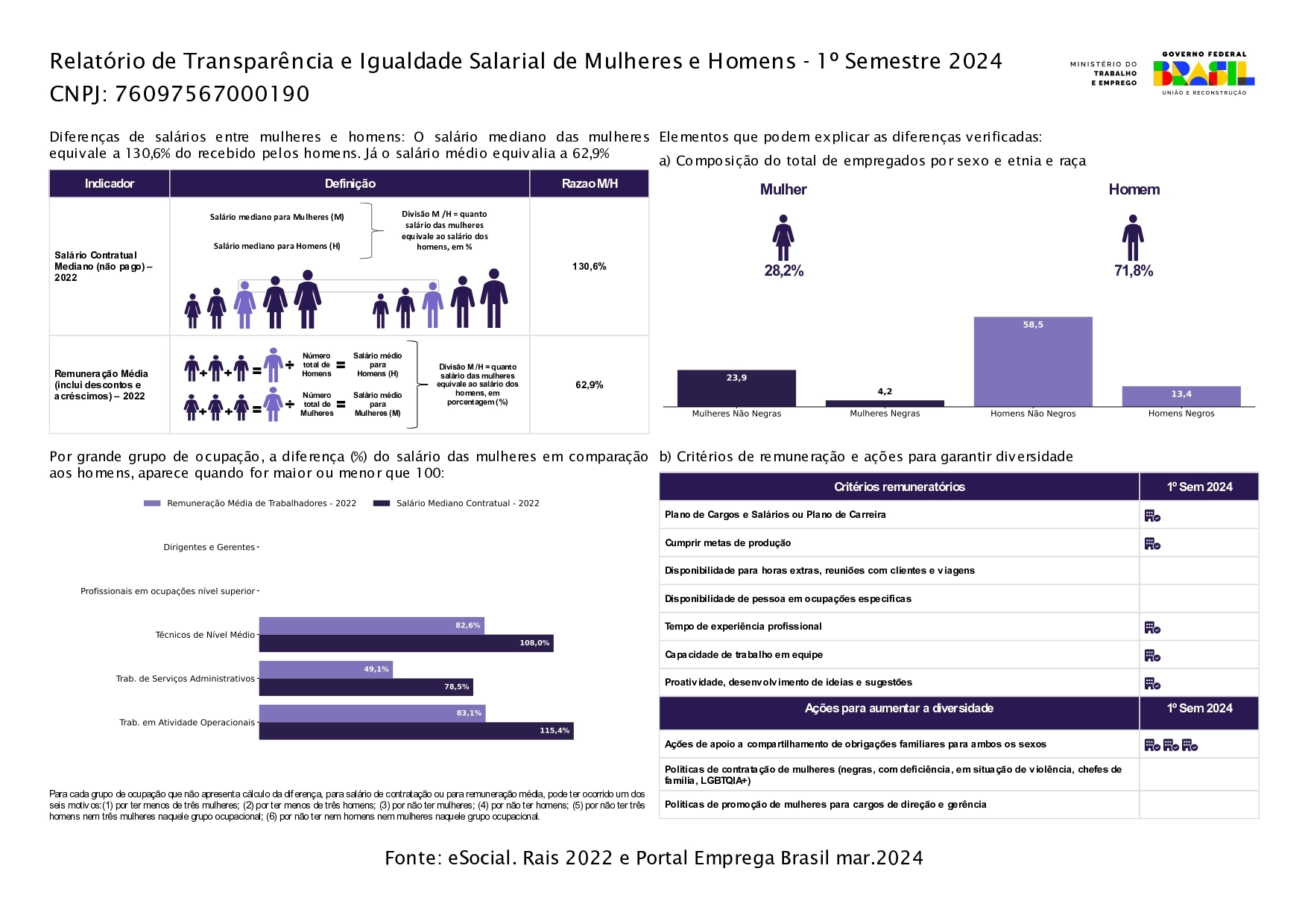O Relatório de Igualdade Salarial foi disponibilizado pelo Ministério do Trabalho e Emprego (MTE) e está disponível no portal Emprega Brasil, sendo possível visualizar neste link. Convidamos você a conhecê-lo e acompanhar o progresso nesta importante jornada de transformação e equidade.