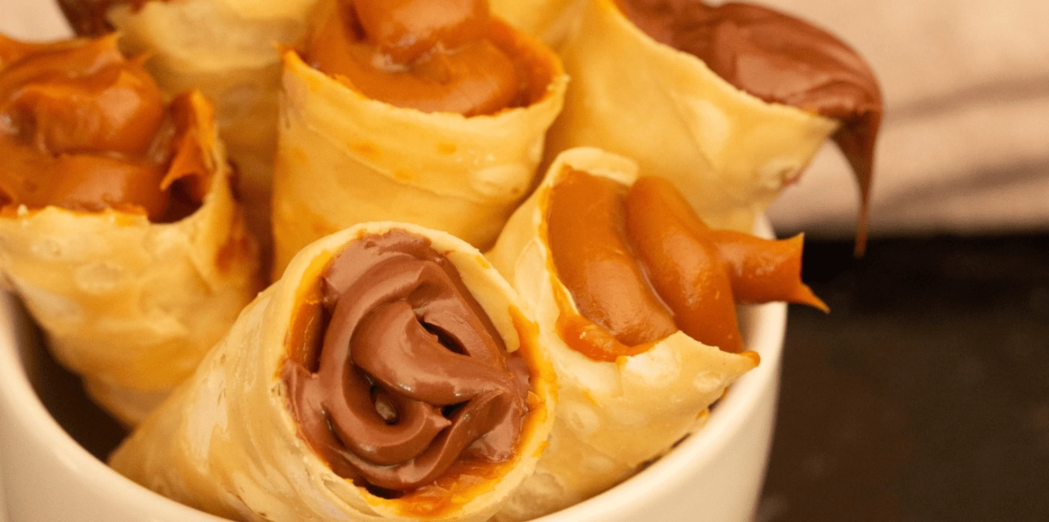 Com a ajuda de uma colher pequena, adicione o doce de leite dentro dos canudinhos;