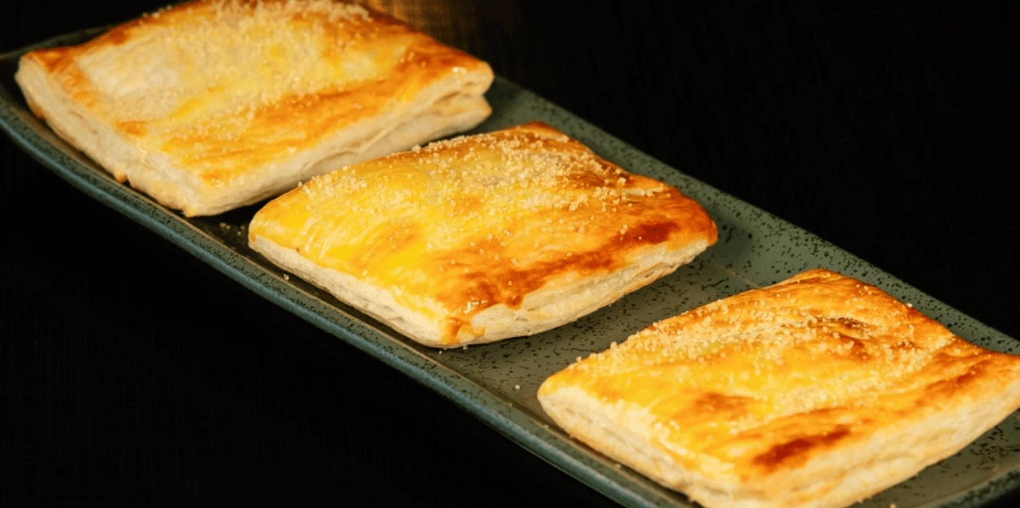 Abra a massa folhada em uma superfície plana e coloque o recheio no centro de cada pedaço de massa;