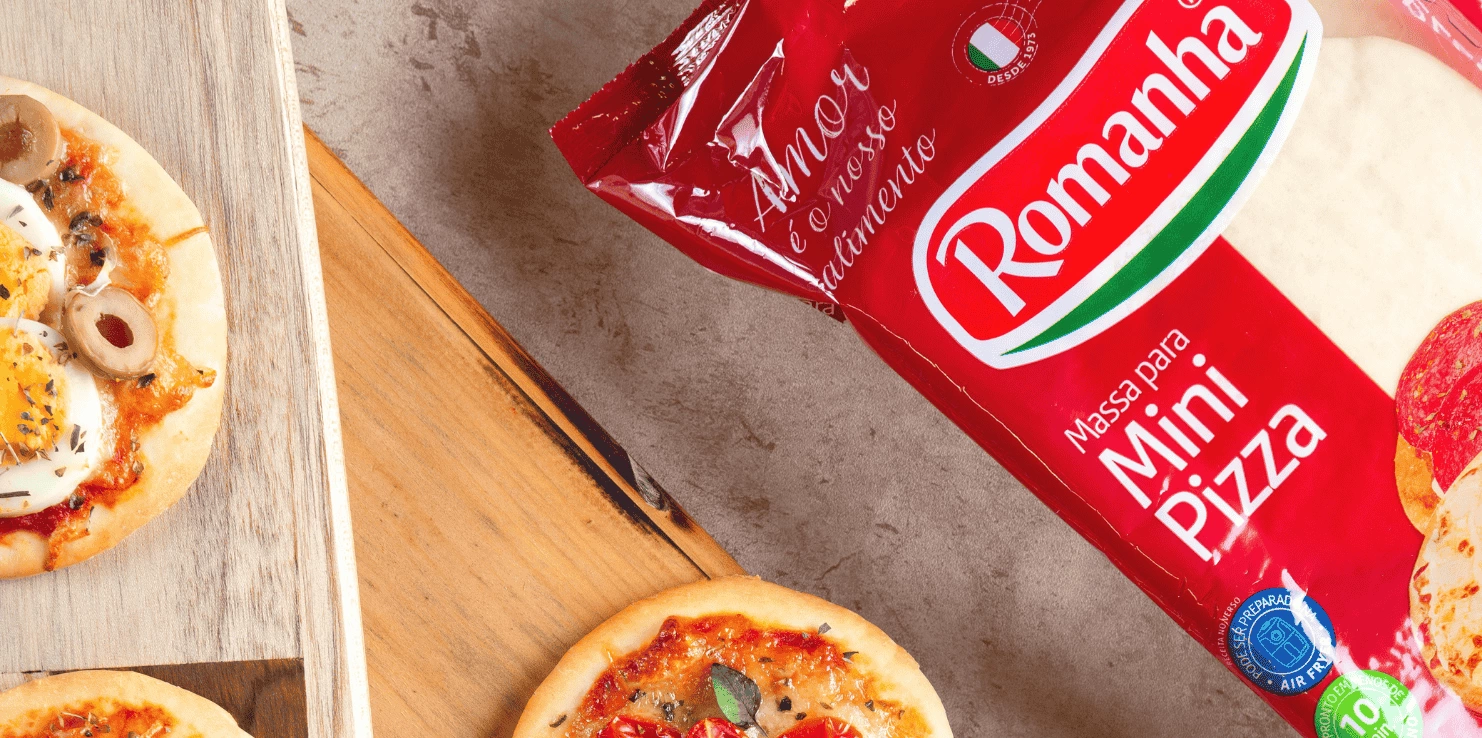 350g de Massa para mini pizza Romanha Molho de tomate 100g de frango desfiado 100g de catupiry ou requeijão cremoso 100g de queijo muçarela
